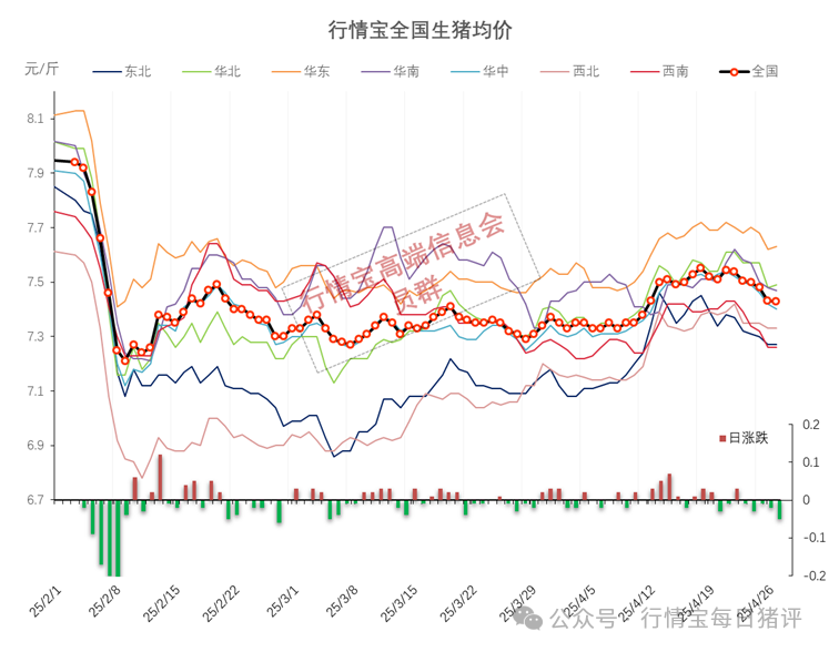 行情宝预计明日全国市场猪价将以稳定为主。具体来看,供应方面,部分区域养殖端仍按计划正常出猪,供应变化不大,但局部区域可能继续存在缩量动作。需求方面,白条走货速度偏慢,下游收购积极性不高,整体需求维持低迷状态。综合来看,市场短期内将维持供需平衡,价格波动幅度有限。